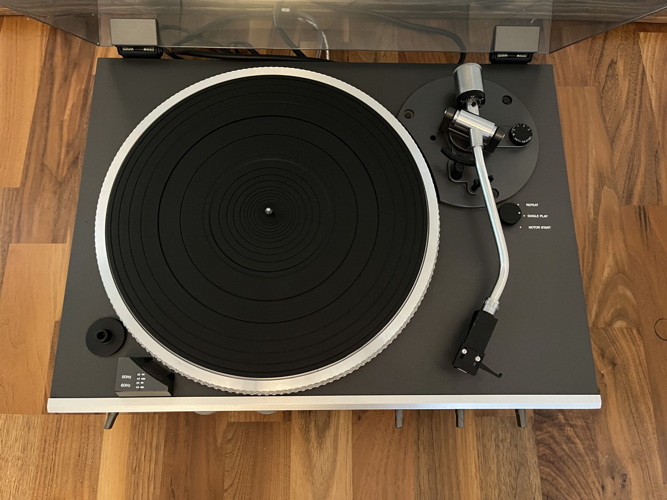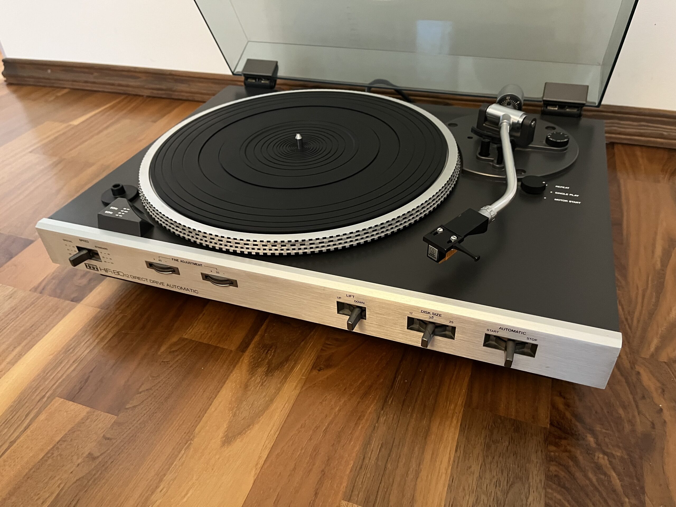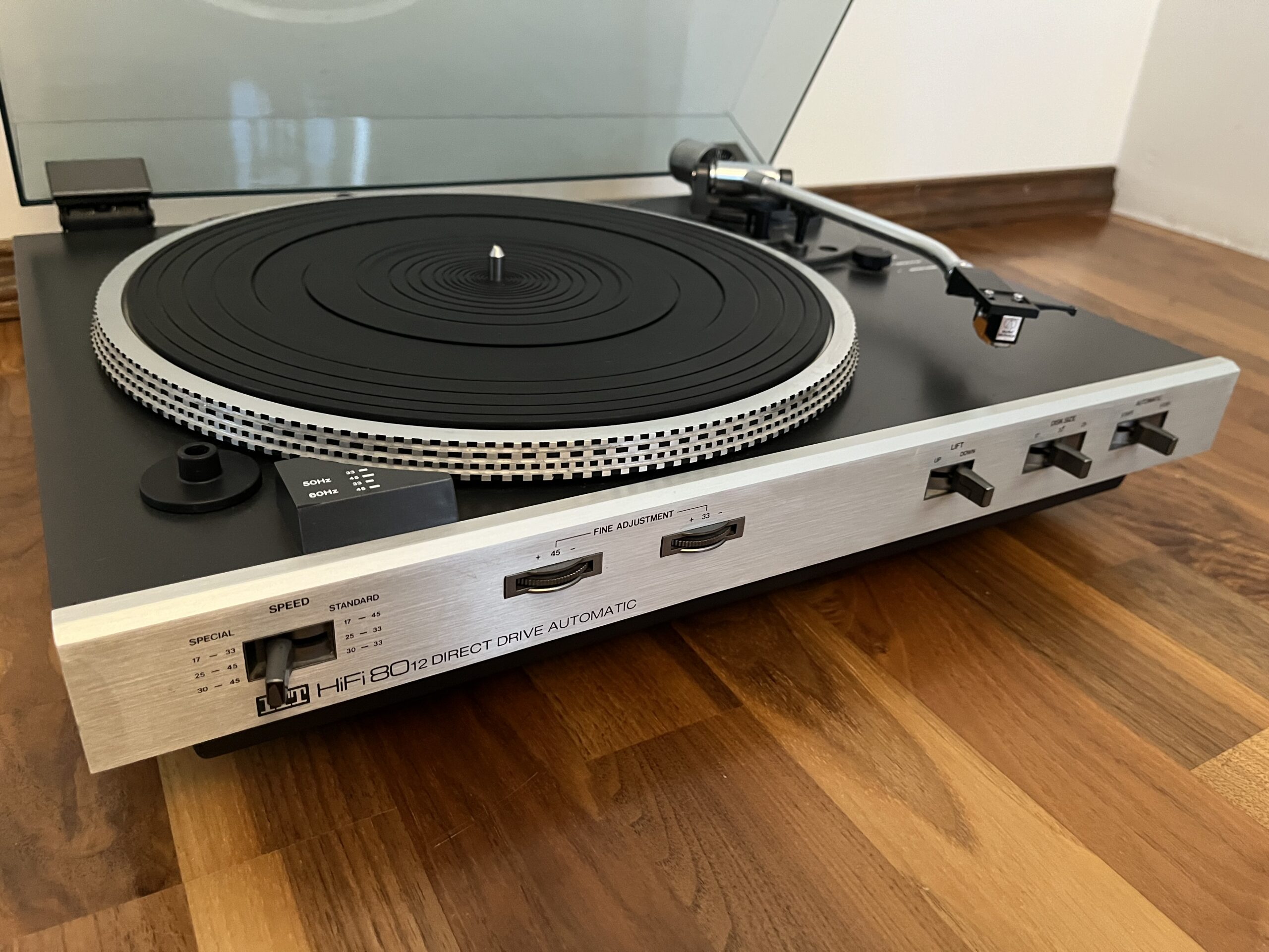 33-45 upm, Pitch Control, Anti Skating, Stroboskoplampe, Repeat, Single Play, Direktantrieb, Vollautomat.