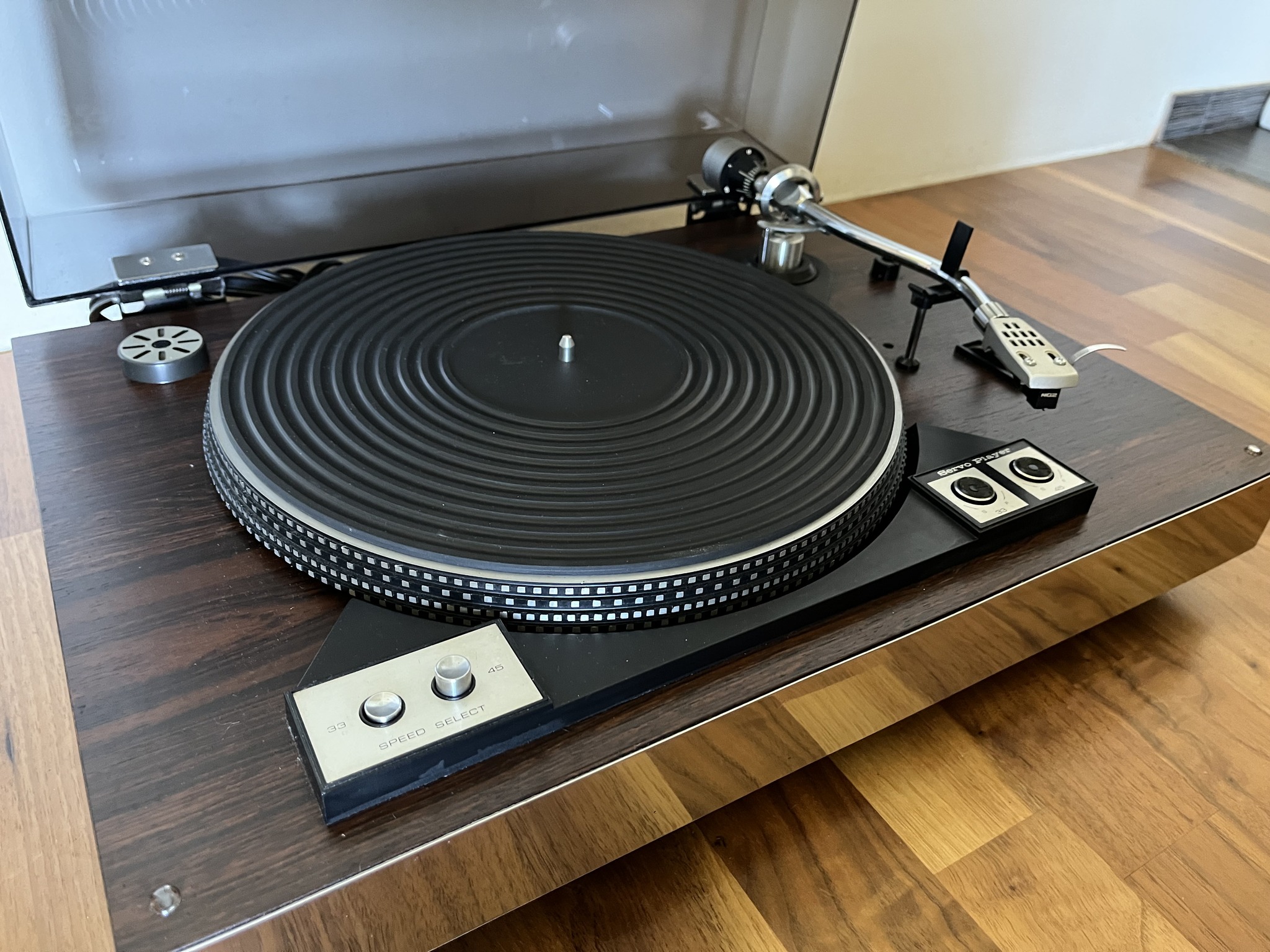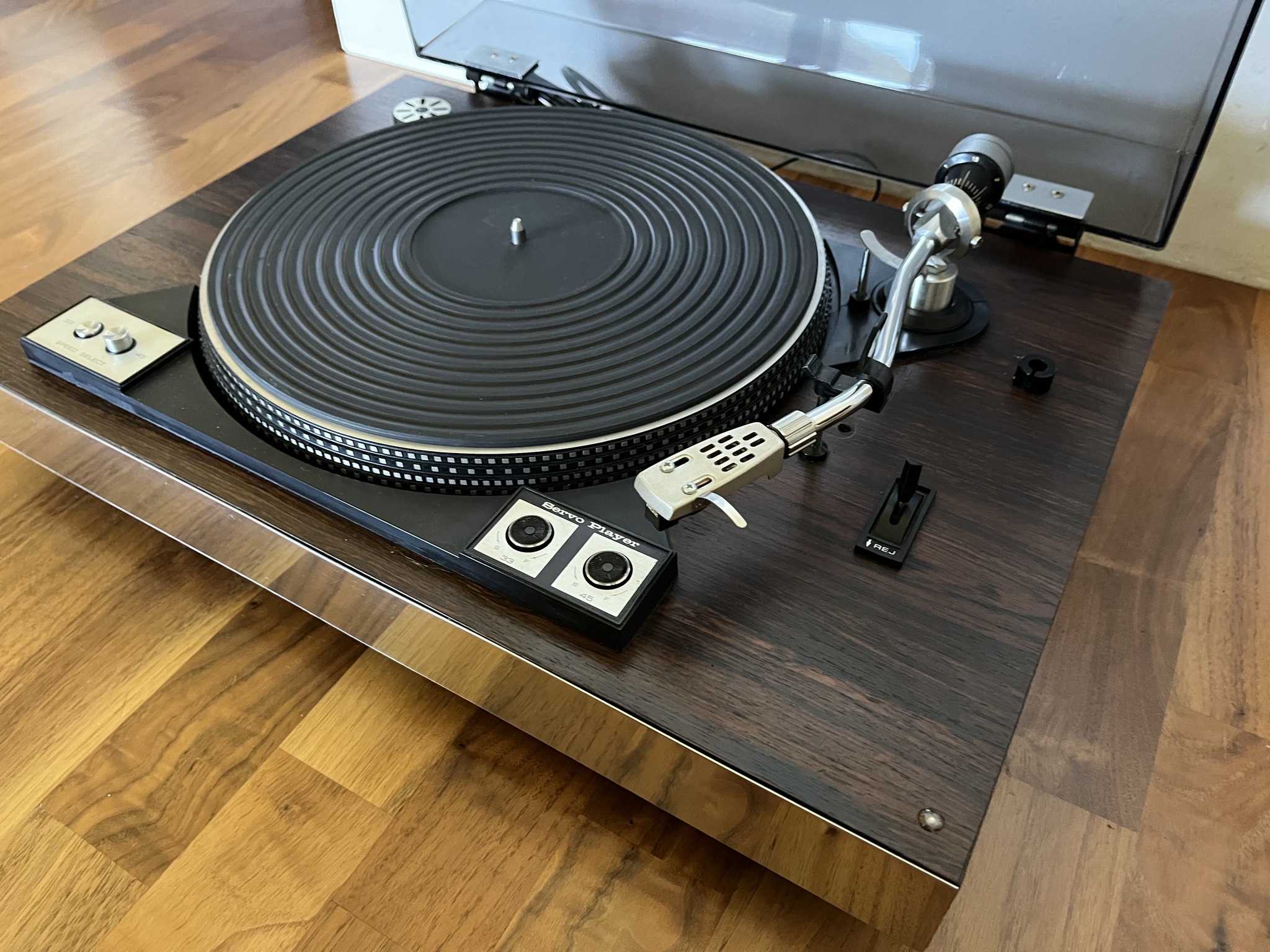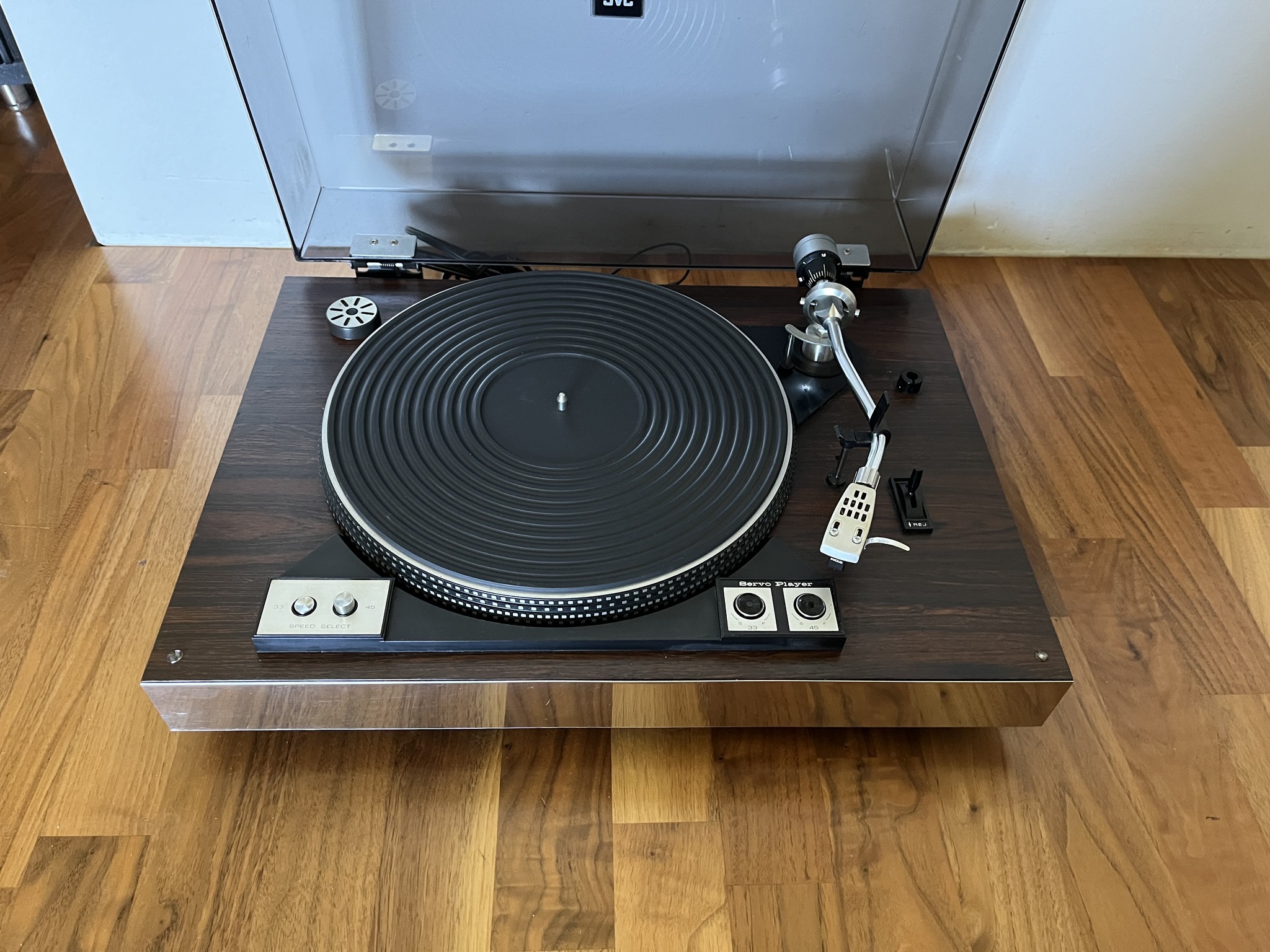 JVC – GL5Heas seisukorras manuaalne vinyylimängija.Korpus kaetud nat. puidust spooniga.Uus veorihm.Tolmukaas poleeritud.Hooldatud ja seadistatud.RCAPitch ControlMade in Japan