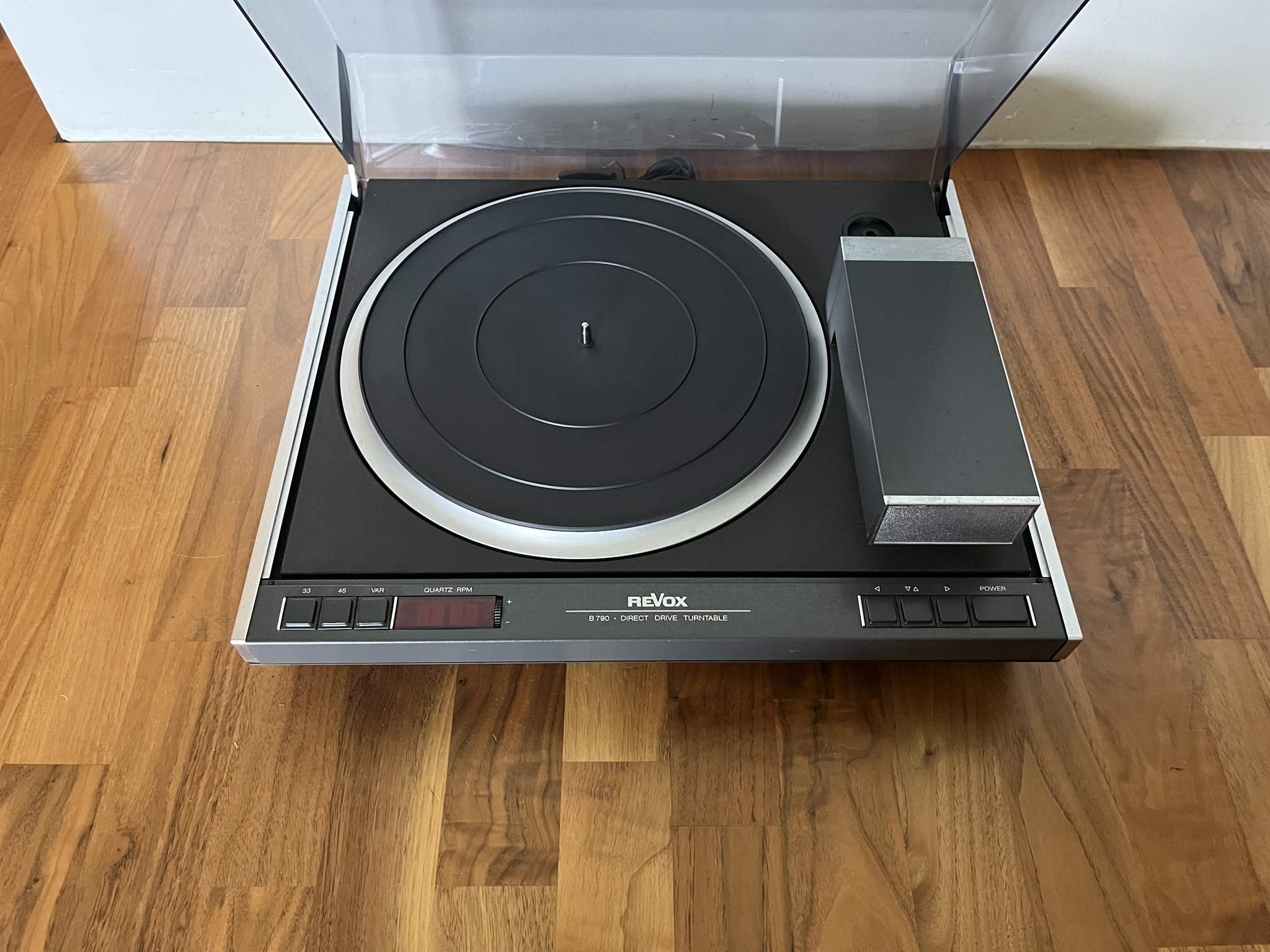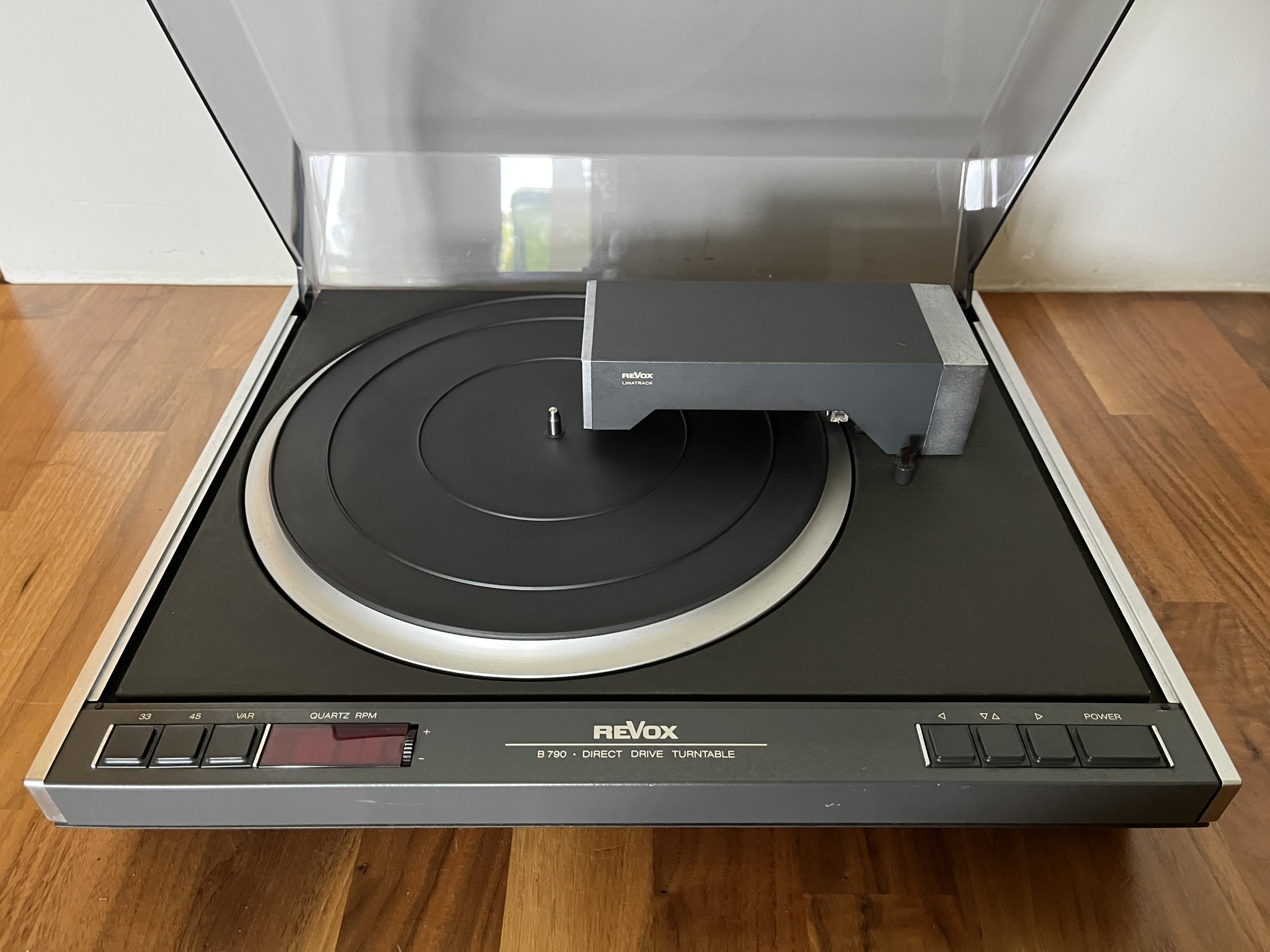 The Revox B790 is a Quartz controlled direct drive turntable with Linear tracking tonearm.